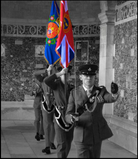 42" x 36" double sided excluding fringe to approved specifications and design, with the badge of the COMBINED CADET FORCE or SCHOOL/COLLEGE COAT OF ARMS within a circlet and inscribed with SCHOOL/COLLEGE TITLE surmounted by the Tudor Royal crown, within the Union wreath digitally printed and applique upon a ground of Royal blue, edged gold fringe including matching gold cords and tassels.