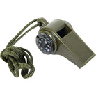 This Mil-Com 3 in 1 whistle incorporates a compass and temperature display onto the whistle itself. Ideal for exercises, sports and expedition or for storing in your survival kit, this whistle is supplied with a tough nylon lanyard. Size: 5cm x 2.5cm (approx). Weight: 7g. Colour: Olive Green.