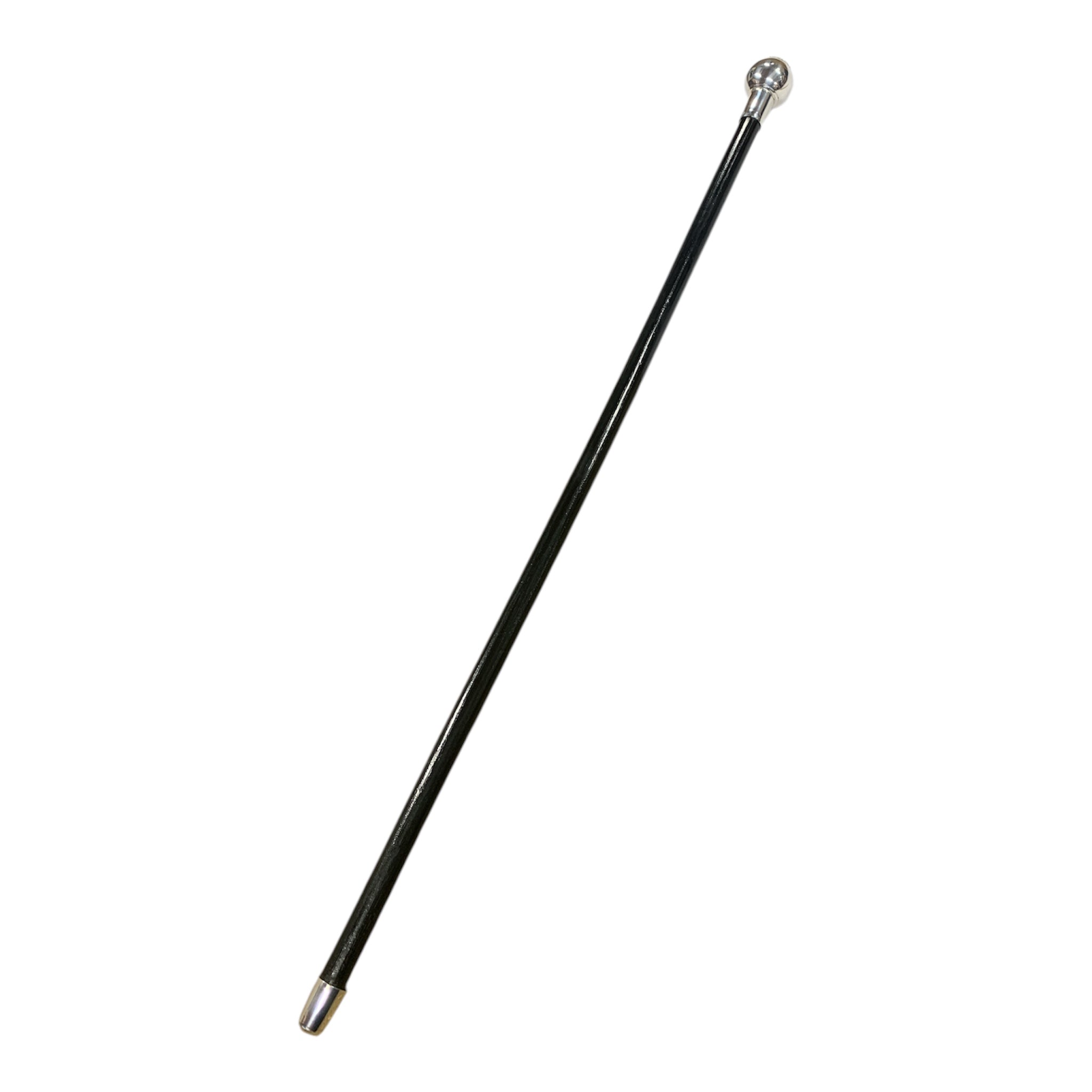 Officer’s of the Regiment & Stick Orderly Cane, 24 inch Black stained rattan cane, 30mm diameter ball cap with 25mm fillet, silver plated, crested with embossed QOGLR current issue regimental badge, silver plated cane tip, Tudor Crown.